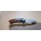 Magnifique couteau lame en damas et manche en loupe de noyer autre essence de bois que ne connais pas.
