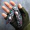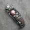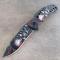 Couteau tactique pliant 3D avec crâne rouge, lame tranchante haute dureté.