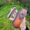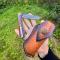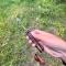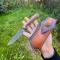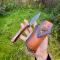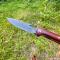 Couteau pliant lame acier damas avec étui manche en bois #297