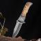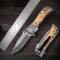 Couteau Compact avec Manche en Bois d’Olivier et Lame Gravée Damas – Élégance et Fonctionnalité