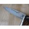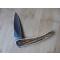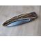 Acier inoxydable, ressort guilloché, manche bois de cerf et rivets à molleton