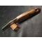 Très beau et solide couteau pour la chasse, pêche, loisirs, ou juste pour le plaisir des yeux avec sa lame damas à la trempe sélective, son manche en noyer et son système de verrouillage à pompe.