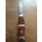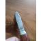 Lame en acier marquée du fabricant, de 7,4cm avec contre tranchant. Malheureusement aiguisé à la pierre et rayée. Visible sur mes photos. Poinçon de fabricant au talon.