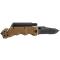 Très bon couteau ouverture/ fermeture 1 main avec une couleur camo/reptile. Fourni avec un étui ceinture souple très pratique.