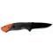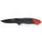 Couteau pliant Alpino Lame noire en acier inoxydable. Manche noir/orange. Clip de ceinture. Fermeture avec système de blocage de la lame """"Liner lock"""". Ouverture d'une main grâce au double bouton latéral. Longueur de lame : 8 cm Longueur du manche : 11,5 cm Longueur totale ouvert : 19,6 cm Longueur fermé : 11,5 cm Poids : 120 gr