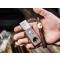 Les connaisseurs apprécient toujours un bon cigare lors d'occasions spéciales. Pour cela, une coupe correcte de la tête du cigare est essentielle et constitue un acte cérémonial. Le couteau de poche Boker Plus Cigar Cutter, avec sa lame en acier 440C et sa poignée en titane, modernise ce rituel grâce à une ouverture spécifique permettant de couper les cigares même lorsque le couteau est fermé. En pressant le bouton-poussoir avant, la lame sort à 45°, dévoilant l'ouverture pour insérer un cigare. En pressant simultanément le bouton arrière, la lame s'ouvre entièrement, comme un couteau automatique compact. La lame courte à émouture simple est adaptée aux petites tâches quotidiennes. La finition smoky stonewash complète son design épuré.