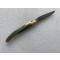 Le manche est en bois coloré vert bleute et laiton et il mesure 9 cm .