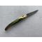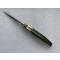 Le manche est en bois coloré vert et laiton et il mesure 9 cm .