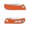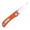 Manche habillé avec des plaquettes en G10 orange et trou à l'arrière pour le passage d'une dragonne.
