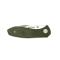 Une lame satinée, lisse en acier inoxydable D2 Premium fini à la main- dureté 59-60HRC- à cran intérieur et à bouton double et forme Drop Point. Roulements à billes en céramique. Eikonic gravé sur la lame.