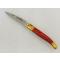 Couteau de poche Le Bougna 22 cm ouvert manche en bois coloré rouge.