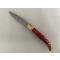 Couteau de poche Le Bougna 22 cm ouvert manche en bois coloré rouge et tir bouchon.