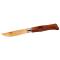 Sa taille compacte le rend facile à transporter tout en restant efficace lors de vos aventures sur le terrain. Le design ergonomique du manche en bois naturel, combiné à un profil de lame Drop Point, vous offre une prise en main confortable et un contrôle précis pour toutes vos découpes.