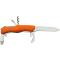 Le couteau de poche Mikov multifonctions combine cinq outils pratiques, dont une lame en acier 420, un tire-bouchon et un ouvre-boîte. Son manche orange en plastique assure une prise en main confortable et une visibilité optimale. Le système Liner Lock garantit une utilisation sécurisée. Longueur totale : 110 mm.