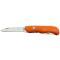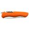 Le manche en plastique, de couleur orange, assure une prise en main confortable et une visibilité accrue, même dans des environnements peu éclairés. Le couteau se fixe facilement à un porte-clés, facilitant son transport et son accessibilité.