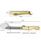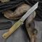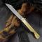 Le manche en laiton doré ajoute une touche de luxe à ce couteau d'exception. Conçu pour offrir une prise en main confortable, il arbore des motifs japonais emblématiques et dispose d'un trou pour lanière, offrant ainsi un transport pratique et stylé. Ergonomique et élégant, ce couteau est un compagnon idéal pour toutes les occasions, avec ses 165 mm de longueur totale.