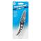 Lame en acier inoxydable et poignée métallique bicolore avec clip de ceinture. La lame s'ouvre d'une main et se verrouille en place automatiquement.