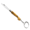 Couteau porte-clés Nontron n°10 Virole fixe en laiton Manche sabot en buis patiné, orné de décorations en pyrogravure. Lame en acier inoxydable T12, permettant un tranchant précis de qualité. Longueur de lame : 4 cm Longueur du manche : 6 cm Poids : 10 gr 100% made in France.