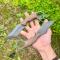 Couteau ring knife style karambit lame tanto acier d2 stonewash g10 marron