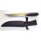 Bonne prise en main, lame pas trop épaisse ,pas d'impression de lourdeur, ai perdu le tranchant après avoir dépecé un sanglier avec, donc pas sur que le tranchant tienne dans le temps.