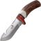 Ce couteau se distingue par sa lame en acier inoxydable 1.4116, offrant un excellent compromis entre tranchant, résistance à la corrosion et facilité d'affûtage. Son crochet à dépecer permet d'ouvrir facilement la peau du gibier sans endommager les tissus. Le manche en corne de cerf véritable offre une prise en main confortable et sûre, même dans des conditions humides ou glissantes. La mitre en bois de chêne ajoute une touche d'élégance et de raffinement.