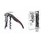 Couteau sommelier PULLTEX « CLICKCUT MONZA » 3 pièces (lame micro-dentée, double levier rétractile avec décapsuleur, mèche noire) manche 12 cm façon fibre de carbone avec intérieur rouge. Principe : - Le premier cran rétractable permet d'extraire le bouchon aux trois quarts (la mèche restant toujours dans l'axe du goulot). - Avec le second cran, on dégage sans difficulté le quart restant.