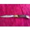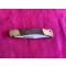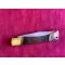 Couteau style buck des années 80, de marque Gimel, la lame est voilée sur la fin et part sur la droite, le rivet en haut cliquette un peu du à un petit écartement sur le haut de la plaquette gauche, voir photos, mais les mitres ne bougent pas, des rayures un peu partout mais rien de méchant, aucun jeu et toujours fonctionnel, pas de prix de réserve.