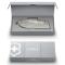 Irréprochable en termes de qualité et de finition, élégant mais aussi extrêmement efficace, le couteau Evoke Alox en coloris gris Silver fait honneur à la célèbre marque de couteaux suisses Victorinox. Outre la qualité et l'élégance de ce couteau suisse, on apprécie en particulier son ouverture à une main, son ergonomie et son blocage de sécurité. N'oublions pas également son clip-ceinture au niveau du manche. Concrètement, avec son manche texturé de 130 mm et son équilibre parfait, le couteau Victorinox Evoke Alox fournit une tenue en main exemplaire et un confort d'utilisation au-dessus de la moyenne. Avec sa lame tranchante et pointue de 100 mm, sa puissance se hisse au niveau de l'élite des couteaux de poche. De par sa forme et son manche nervuré facilement identifiable, on reconnait ce couteau suisse Victorinox immédiatement parmi d'autres couteaux. Bon à savoir : la couleur de son manche (gris Silver) correspond à la couleur originelle des premiers couteaux suisses Alox.