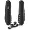 Solide, résistant à la corrosion et construit pour durer, le couteau Spartan PS Victorinox en version Onyx Black est fabriqué avec des matériaux de haute qualité : couteau suisse Victorinox avec un manche en ABS Cellidor noir (dimensions : 91 x 26 x 14 mm) et une partie métallique en acier inoxydable (avec traitement PoliSpectral) de couleur Onyx Black. Son poids léger de 60 grammes est un avantage de plus. Son nombre de fonctions passe de 12 (Spartan classique) à 13 (Spartan PS). On gagne un cordon situé au niveau de l'anneau porte-clés et on conserve tout ce qui a forgé le succès du Spartan : la lame de 7 cm et la petite lame de précision, l'ouvre-boîtes, le tire-bouchon et le décapsuleur, les 2 tournevis, le dénude-fils, le cure-dents, les pincettes et le poinçon alésoir avec chas d'aiguille. Plus que jamais, le Victorinox Spartan PS Onyx Black démontre une certaine universalité.