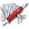 Le couteau suisse Swisschamp Victorinox est équipé de 33 fonctions. Voici la liste complète : deux lames dont une grande (7 cm) et une petite (4 cm), un poinçon alésoir avec chas d'aiguille (pour percer un trou, pour aléser ou pour coudre), un tire-bouchon, des pincettes, un cure-dents, un anneau d'accroche, une fonction ouvre-boîte avec outil tournevis (pour vis cruciforme), une fonction décapsuleur avec outils tournevis plat et plioir de fils électriques. De plus, le Victorinox Swisschamp dispose d'un crochet porte-paquets, d'une scie à bois, d'une paire de ciseaux, d'un stylo à bille pressurisé, d'un outil écailleur, d'un outil dégorgeoir, d'un mesureur (en centimètres et en pouces), d'une fonction lime à métaux, d'une fonction lime à ongles, d'un cure-ongles, d'une scie à métaux, d'un tournevis de précision, d'une fonction ciseau à bois, d'une pince multi-usages, d'une fonction coupe-fil, d'une fonction serre-cosses, d'un tournevis Phillips cruciforme, d'une loupe (très utile pour visualiser précisément une carte, faciliter la lecture d'un petit texte, zoomer sur une zone précise ou allumer un feu en concentrant les rayons du soleil), d'une épingle et d'un mini-tournevis. Cadeau à la fois utile et ingénieux, le couteau suisse Victorinox Swisschamp se destine à tout profil, de l'aventurier à l'homme d'affaires en passant par le voyageur, le collectionneur, le randonneur et le citadin. Remarque : modèle ayant obtenu maintes récompenses dans le monde.