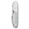 Il comprend une grande lame et côtes en Alox quadrillé teinte gris avec ouverture.