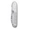 Il comprend une grande lame et côtes en Alox quadrillé teinte gris avec ouverture.