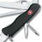 Le couteau suisse Trailmaster Military Victorinox regroupe 12 fonctionnalités dont un ouvre-boîte avec petit tournevis, un décapsuleur avec grand tournevis plat et plioir de fils électriques, un poinçon alésoir (usages : perçage, alésage, calibrage), un anneau d'accroche, des pincettes et un cure-dents. Comme évoqué précédemment, il comporte également une grande lame verrouillable (multi-usages) à ouverture d'une main, ainsi qu'un tournevis cruciforme également blocable. En résumé, choisir un couteau suisse Victorinox Trailmaster Military, c'est opter pour un couteau suisse complet, léger et robuste : un couteau multifonction idéal pour les militaires, soldats, randonneurs et aventuriers, idéal en trek, survie et bivouac. Bon à savoir : le Trailmaster Military est aussi connu sous le nom de Trailmaster Black ou Trailfinder Black.