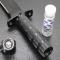La poignée est en acier inoxydable noir avec parties anti-dérapantes et bouchon dévissable à l'arrière pour accéder aux accessoires sont en Peralumal creux.