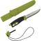 Qu'on se le dise : le couteau Mora Companion Spark est tout sauf un gadget. Ce n'est pas juste un bon couteau. Destiné avant tout à la survie, c'est à la fois un bon couteau de survie capable de trancher, débiter du petit bois ou écailler un poisson (par exemple) mais également une bonne pierre à feu capable de produire des étincelles pour un démarrage rapide de feu dans n'importe quelles conditions. En plus de la pierre à feu installée dans le manche du Companion Spark, on a également à disposition 45 cm de paracorde pouvant servir de cordon ou de cordelette à tout faire (y compris des pièges ou des collets). À tout point de vue, le Spark mérite son appellation de couteau suédois ou de couteau allume-feu.