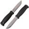 Tout ce que l'on cherche dans un couteau de survie, le Mora Garberg l'a. La qualité de la lame s'explique par une fabrication en acier inoxydable suédois, une épaisseur plus que satisfaisante de 3,2 mm et un tranchant très acéré sur toute la longueur jusque la pointe du couteau. Outre la lame, c'est également le manche qui a été traité aux petits oignons : il est en TPE antiglisse (toucher gomme) et texturé pour améliorer encore le côté antidérapant. Résultat : la prise en main est exceptionnelle. Sa polyvalence s'explique en grande partie par ses bonnes dimensions : il n'est ni trop petit ni trop grand (longueur totale : 230 mm) et il y a un bon équilibre entre le manche (longueur du manche : 120 mm) et la lame (longueur de la lame : 110 mm). Et quand on parle de polyvalence, il ne faut pas oublier l'étui Multi-Mount (fourni avec le couteau) : cet étui très complet repousse toutes les limites en termes de fixation, de port et de transport. Résultat : le couteau de survie Mora Garberg vous suit dans tous vos déplacements à pied, à vélo et en bateau ou en véhicules divers (voiture, moto, quad...). Et le Garberg Mora sert à tout : coupe, hachage, et taillage ainsi que production de copeaux de bois, grattage de pierre à feu et chasse ou pêche. Poids total (couteau + étui) : 240 grammes. Autre argument : son coloris noir, sobre et discret.