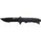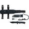 Lame de 124 mm en acier inox type 420 finition satinée noire mat, très résistante avec sérations sur la moitié de la longueur pour la coupe de sangles ou de cordes. Manche à plaquettes vissées avec un profond relief antidérapant. Brise glace. Pierre diamantée au dos du fourreau. Livré avec un étui en nylon, un allume feu au ferrocerium et une lame accessoire utilisable comme skinner ou comme coupe ceinture. Dos utilisable pour provoquer des étincelles avec l'allume feu.