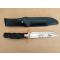 Couteau de survie avec boussole et pochette d'allumettes intégrées dans le manche en métal, lame en acier inoxydable, garde teintée bronze,fourreau en cuir noir. Longueur totale 28cm-poignée 12cm poids total 250g