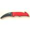 Lame noire en acier inoxydable à dents de scie et à bout arrondi pour éviter les blessures, bouton d'ouverture à une main. Manche en aluminium rouge avec coupe-ceinture et brise-vitre.