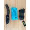 Le manche est en micarta rainuré, pour une accroche optimale. Le couteau est livré avec un étui solide en kydex. On attache ce fourreau facilement à la ceinture grâce à des boutons-pression.