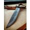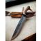 Le manche est en bois de cerf et intercallaire en cuir derrière la garde.