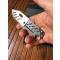 Le Boker Plus, un couteau pliant au format carte de crédit, apporte une touche d'innovation au monde des couteaux portables. Mesurant 7,1 cm de long, 3,5 cm de large et d'une minceur de 3 mm, il se glisse aisément dans votre portefeuille ou votre poche. Vous pouvez également l'attacher à une chaîne autour du cou ou le clipser à la poche de votre chemise. Fabriqué avec une plaque en titane, ce couteau offre une fermeture sécurisée grâce à son système Framelock. Des fentes fraisées sont ajoutées pour alléger le poids, tandis que les rainures pour les doigts et la poignée en G10 offrent un confort ergonomique.