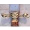 Couteau de vénerie, fusée bois de cerf, garde à 2 têtes de chien, pommeau laiton, sans fourreau,68cm – OBJET VENDU – VENTE TERMINÉE