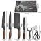 Ensemble de couteaux professionnels Contenu de la livraison : couteau de cuisine (17,8 cm), couteau de chef (19,5 cm), couteau à trancher (19,5 cm), couteau multi-usages (12,7 cm), ciseaux multifonctions (20 cm), rabot à melon (15 cm). ) Bloc de couteaux de cuisine recommandé pour le nettoyage des mains.