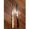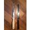 Couteaux d'occasion mais de qualité !!! bien affûtés et en bon état . Pour viande / pain / etc . Longueurs : le blanc 31 cm / le manche en bois : 32,5 cm.