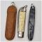 Je vous propose ce lot de 3 anciens petits couteaux de poche publicitaire, plaquettes différentes matières, le plus petit à un étui,