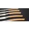 Chaque couteau est doté d'une lame en acier inoxydable de haute qualité, offrant une coupe nette et précise, idéale pour les viandes. Le manche en bois d'olivier, aux veinures naturelles uniques, assure une excellente prise en main tout en apportant une touche chaleureuse et authentique.