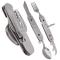 Le Couvert / Couteau 6 en 1 est un ustensile multifonction compact, idéal pour les activités de plein air telles que le bivouac, le camping ou la randonnée. Conçu pour les aventuriers, il combine six outils essentiels en un seul accessoire pratique.