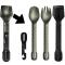 Le couvert multifonction Gerber Compleat rassemble les fonctions de fourchette, de cuillère et de couteau mais aussi de spatule, de pince et d'outil multifonction. Tous les éléments s'emboîtent les uns dans les autres pour un réel gain de place. En résumé, le Compleat de Gerber est un couvert à la fois complet, solide et compact. Poids : 64 g. Volume rangé : 20 x 4 x 2,5 cm.