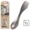 Léger (poids : 20 grammes), solide (matière : titane) et inoxydable (anticorrosion, nettoyage facile), le Spork Titanium de Light My Fire est un couvert multifonction très apprécié dans les milieux du trek et de la grande randonnée. Très pratique également en camping, en bivouac, en expédition, en voyage ou au bureau, le Spork Titanium peut s'emmener et s'utiliser partout. Reprenant le design du Spork originale, cuillère, fourchette et couteau en un seul couvert, son encombrement est optimal : il ne prend que peu de place dans votre sac à dos, popote ou Lunch Box. Les dimensions du Spork en titane s'élèvent à 170 mm de long pour 39 mm de large et 20 mm de profondeur.